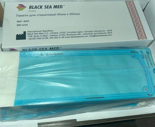 Пакети для стерилізації BLACKSEAMED 90мм*260 мм, 200 шт/пач, 10 пач/ящ